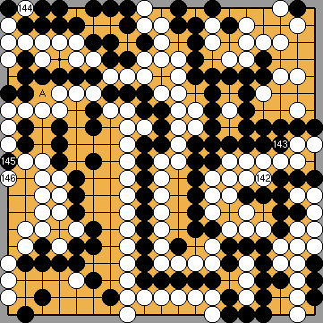 Please note that White's bottom group is much smaller than her group at the left edge, so she will gain here. | |