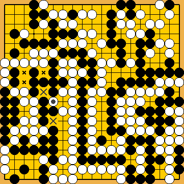 In order to profit from the ko-fight in the left centre, Black must connect the ko at Black's last move | |