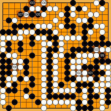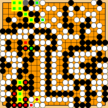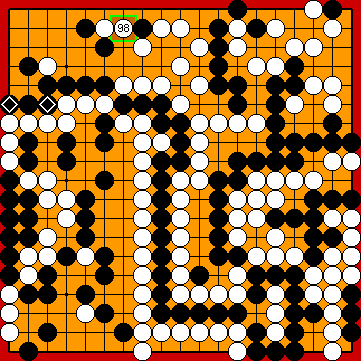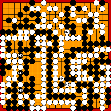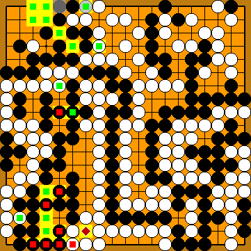 Black will win the game by two points hereafter. You may wonder why it won't be a three-point win, as in Our 2015 Solution. Well, KataGo has a surprise in store in the bottom left corner! | |