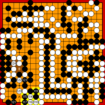 However, Black can even do without this kikashi, as setting his hopes on a semeai with White's centre group will be in vain. | |