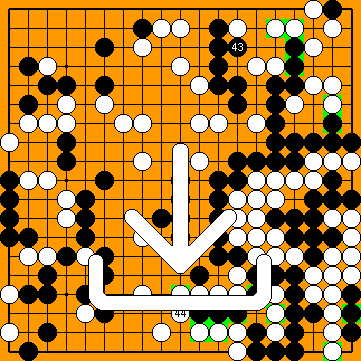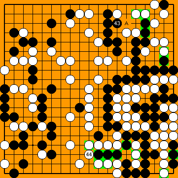In the upper right corner, two exchanges of a P18-reduction of White's territory have already been played. Instead of following Black with |