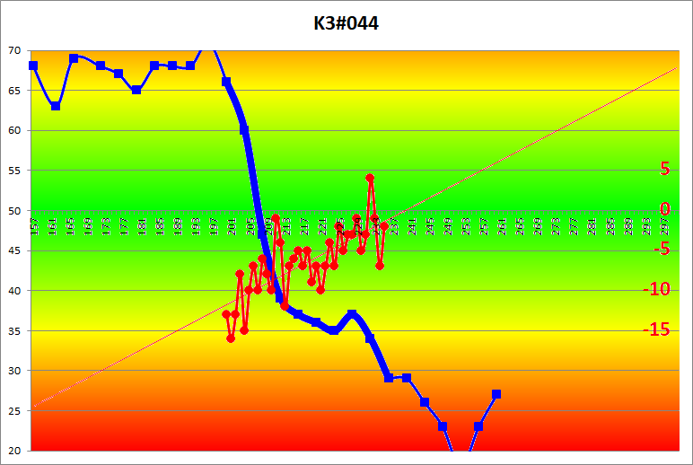 28b's surplus of won games in the Jûrokubango (the red line in the diagram) finally reached a balanced state, showing an upward trend. This makes sense in that both 28b and 40b won most of their games playing White. So we are looking at a "false positive" here ! |
