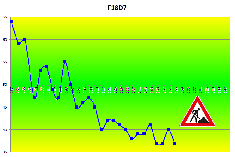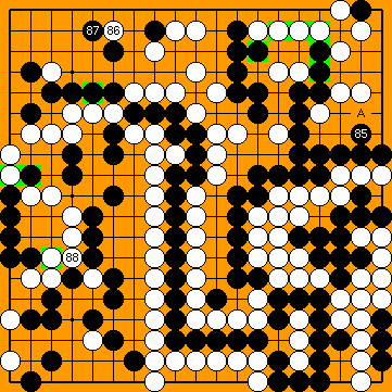 During the course of 28b's self-play training, Black's Initial Self-Play Success Ratio (the blue line in the diagram) fell steadily until it finally stabilised in the "green-yellow" range around 40%. We will probably have to wait and see how things develop in the further course of the Jûrokubango. |
