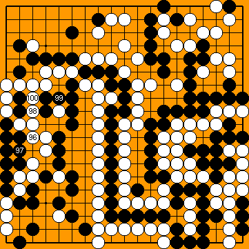 All of Black's groups on the right-hand side of the board are dead. White wins the game with ease. |