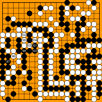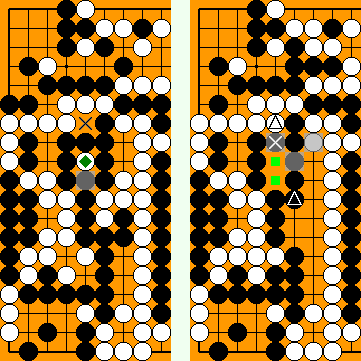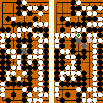 In the Semeai Variation, however, Black will capture one more White stone at right ( |