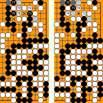 Here, White has three points of territory ( At right, White has also three points of territory. White will win the game by 2 points (Capture Variation, Komi = 1). |
